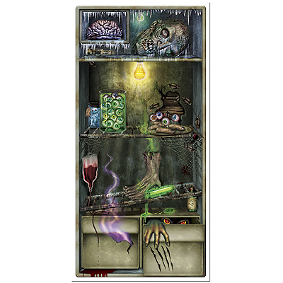 Türposter "Horror-Kühlschrank". Kunststofffolie, ca. 76 x 150 cm. 1 Stück. Das Poster wird gefaltet geliefert.