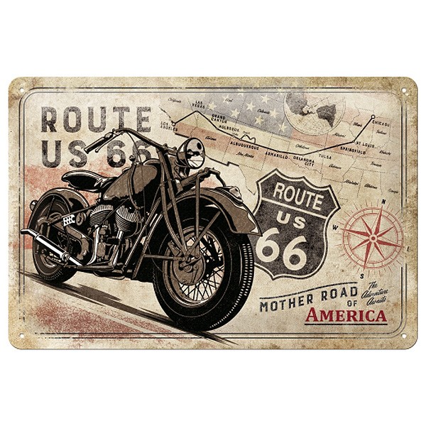 Blechschild Route 66 Bike Map 30x20 cm