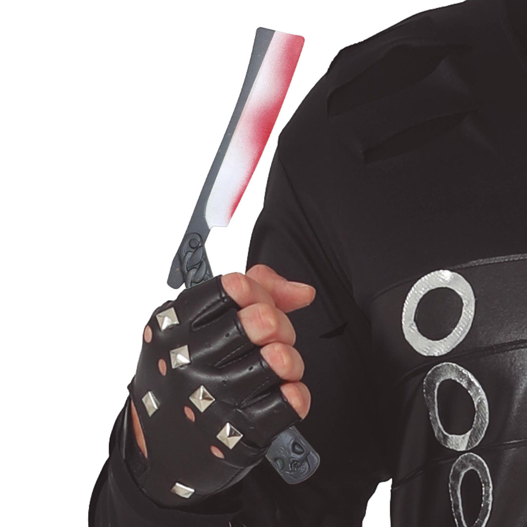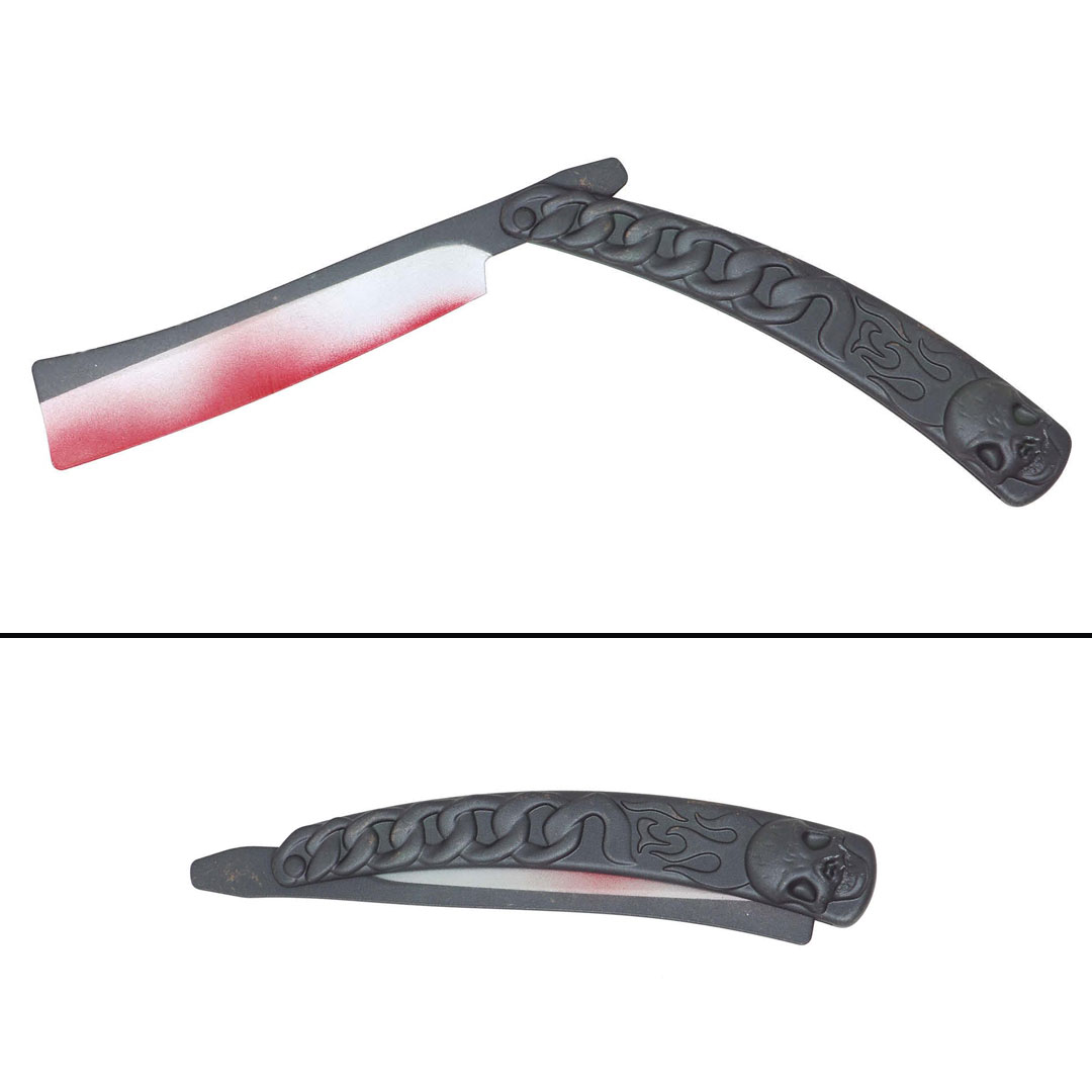 Dieses blutige Rasiermesser aus Kunststoff ist das ideale Accessoire für alle, die ihrem Halloween‑ oder Karnevalskostüm eine schaurige, aber vollkommen ungefährliche Note verleihen möchten. Ob für verrückte Friseure, düstere Charaktere, irre Mörder oder andere unheimliche Kostümideen – das Requisit sorgt sofort für eine eindrucksvolle Wirkung.