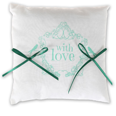 Ringkissen "With Love mint", Kissen ca. 18 x 18 cm. Bezug 100 % Baumwolle. Lieferung ohne Ringe und Deko.