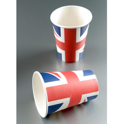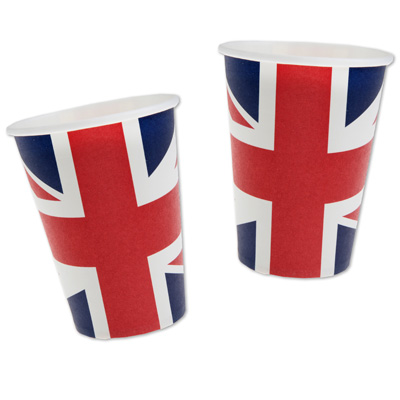 Pappbecher mit britischer Fahne, Füllmenge ca. 250 ml, Set mit 10 Stück. Lieferung ohne sonstige Deko.